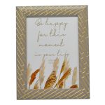 Κορνίζα πλαστική σε μπεζ νουντ χρώμα με διακόσμηση χρυσές γραμμές. Περιστρέφεται δίνοντας τη δυνατότητα τοποθέτησης οριζόντιας ή κάθετης φωτογραφίας κ κρεμιέται στον τοίχο.