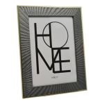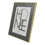 Κορνίζα πλαστική με πλαίσιο σε γκρι χρώμα με διακόσμηση ανάγλυφες γραμμές και χρυσό περίγραμμα. Περιστρέφεται δίνοντας τη δυνατότητα τοποθέτησης οριζόντιας ή κάθετης φωτογραφίας κ κρεμιέται στον τοίχο.