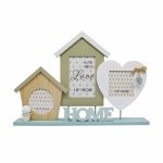 Κορνίζα ξύλινη τριών θέσεων, σε σχήμα σπιτάκια 10x10εκ. κ 10x15εκ. κ καρδιάς 10x10εκ., σε λευκό, μπλε ραφ κ λαδί χρώματα με διακόσμηση επιγραφή HOME.Δώστε μια άλλη νότα στο προσωπικό σας χώρο κρατώντας ζωντανές τις αναμνήσεις κ τις πιο όμορφες στιγμές σας