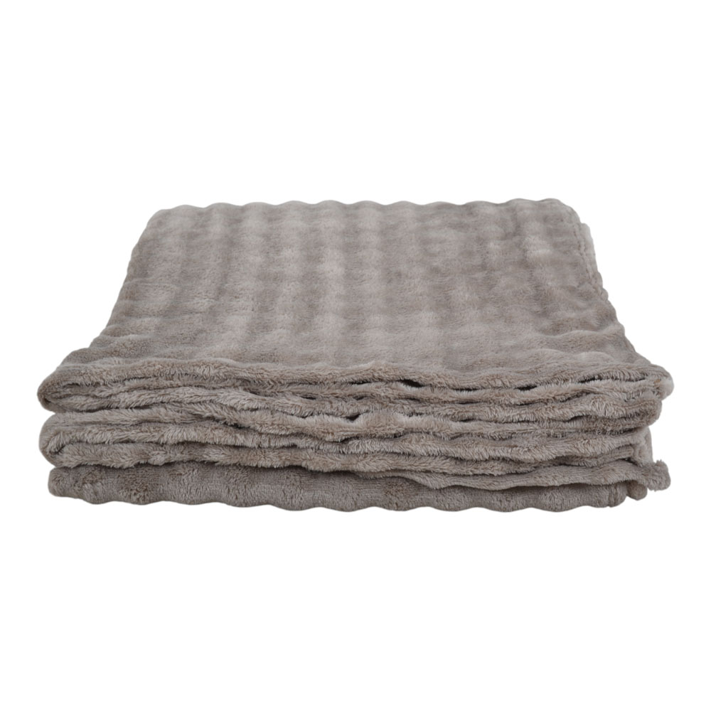 Κουβέρτα fleece με ανάγλυφο σχέδιο, 100% πολυεστερική σε taupe χρώμα. Απαλή και με βελούδινη υφή, προσφέρει ζεστασιά και άνεση όλες τις εποχές. Ιδανική για διπλό κρεβάτι, πλένεται εύκολα στο πλυντήριο και στεγνώνει γρήγορα.