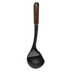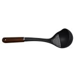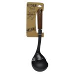 Κουτάλα βαθιά από υψηλής ποιότητας πλαστικό naylon, ασφαλές στη χρήση και ανθεκτικό στις υψηλές θερμοκρασίες (έως 220 βαθμούς C). Διαθέτει ξύλινη εργονομική λαβή για σταθερό κράτημα και είναι ιδανική για αντικολλητικά και κεραμικά σκευή.