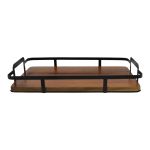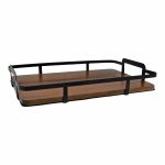 Ορθογώνιος δίσκος από φυσικό ξύλο με μαύρο μεταλλικό σκελετό. Ο κομψός και ανθεκτικός σχεδιασμός του τον καθιστά ιδανικό για σερβίρισμα, διακόσμηση, οργάνωση στο τραπέζι ή ως πιατέλα για παρουσίαση φαγητών.