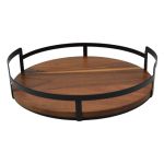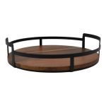 Στρογγυλός δίσκος από φυσικό ξύλο με μαύρο μεταλλικό σκελετό. Ο κομψός και ανθεκτικός σχεδιασμός του τον καθιστά ιδανικό για σερβίρισμα, διακόσμηση, οργάνωση στο τραπέζι ή ως πιατέλα για παρουσίαση φαγητών.