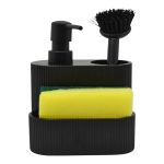 Σαπουνοθήκη για υγρό σαπούνι πολυεστερική σε μαύρο ματ χρώμα, με ανάγλυφη επιφάνεια. Περιλαμβάνει θήκη για σφουγγάρι και βουρτσάκι πιάτων. Ο πρακτικός του σχεδιασμός εξοικονομεί χώρο, διατηρώντας τον πάγκο τακτοποιημένο και κομψό.