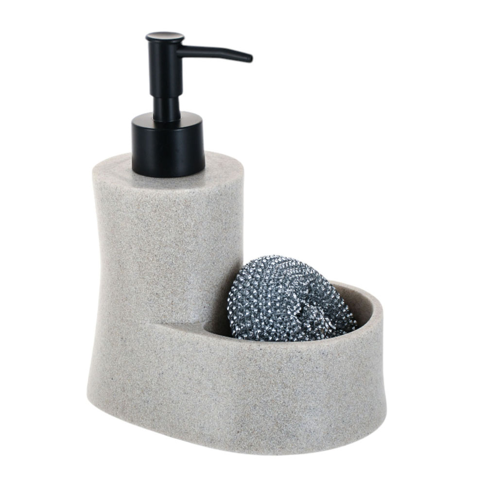 DISPENSER ΚΟΥΖΙΝΑΣ ΠΟΛΥΕΣΤΕΡΙΚΟ ΜΕ ΘΗΚΗ ΓΙΑ ΣΦΟΥΓΓΑΡΙ ΜΑΥΡΟ ΜΕ ΟΨΗ ΠΕΤΡΑΣ 14,5x10x17,5εκ.ANKOR