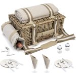 Σετ πικνίκ με αξεσουάρ, ιδανικό για μια ρομαντική έξοδο για δύο. Το καλάθι είναι ψάθινο, προσφέροντας στιβαρότητα και φυσική αισθητική, ενώ το εσωτερικό του περιλαμβάνει ισοθερμική θήκη για να διατηρούνται τα τρόφιμα και τα ποτά δροσερά. Διαθέτει ιμάντα που το καθιστά εύκολο στη μεταφορά. Το σετ περιλαμβάνει πορσελάνινα πιάτα, ποτήρια κρασιού, μαχαιροπίρουνα, πετσέτες, ανοιχτήρι, αλατοπίπερο, κουβέρτα πικ νικ και ισοθερμική θήκη για το κρασί, προσφέροντας όλα τα απαραίτητα για ένα ευχάριστο και κομψό πικνίκ.