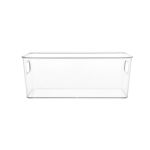 Διάφανη θήκη από ανθεκτικό πλαστικό PET, ιδανική για την τακτοποίηση τροφίμων, μπουκαλιών και συσκευασιών μέσα στο ψυγείο. Διαθέτει πρακτικές λαβές για εύκολη μετακίνηση και διαφανές σώμα ώστε να βλέπετε το περιεχόμενο με μια ματιά.