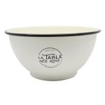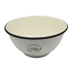 Σαλατιέρα μπολ εμαγιέ σε λευκό χρώμα με διακόσμηση και μαύρο τελείωμα.