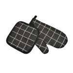 Σετ γάντι με πιάστρα υφασμάτινα 100% βαμβακερά κατάλληλα για την προστασία των χεριών από τις υψηλές θερμοκρασίες και τις καυτές επιφάνειες. Η διάσταση του γαντιού είναι 16x25εκ. και της πιάστρας 16x16εκ.