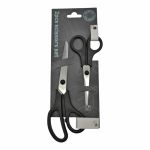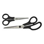 Σετ δύο τεμαχίων ψαλίδια ανοξείδωτα γενικής χρήσης με μαύρη εργονομική λαβή. Τα μεγέθη των ψαλιδιών είναι 14εκ. και 21,5 εκ.
