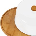Τουρτιέρα με μπαμπού βάση και άσπρο πλαστικό καπάκι. Διαθέτει λαβή από μπαμπού για εύκολη χρήση. Ασφαλής η επαφή με τα τρόφιμα, ιδανική για cup cakes, donuts, μπισκότα ή ότι άλλο θέλετε να αποθηκεύσετε.