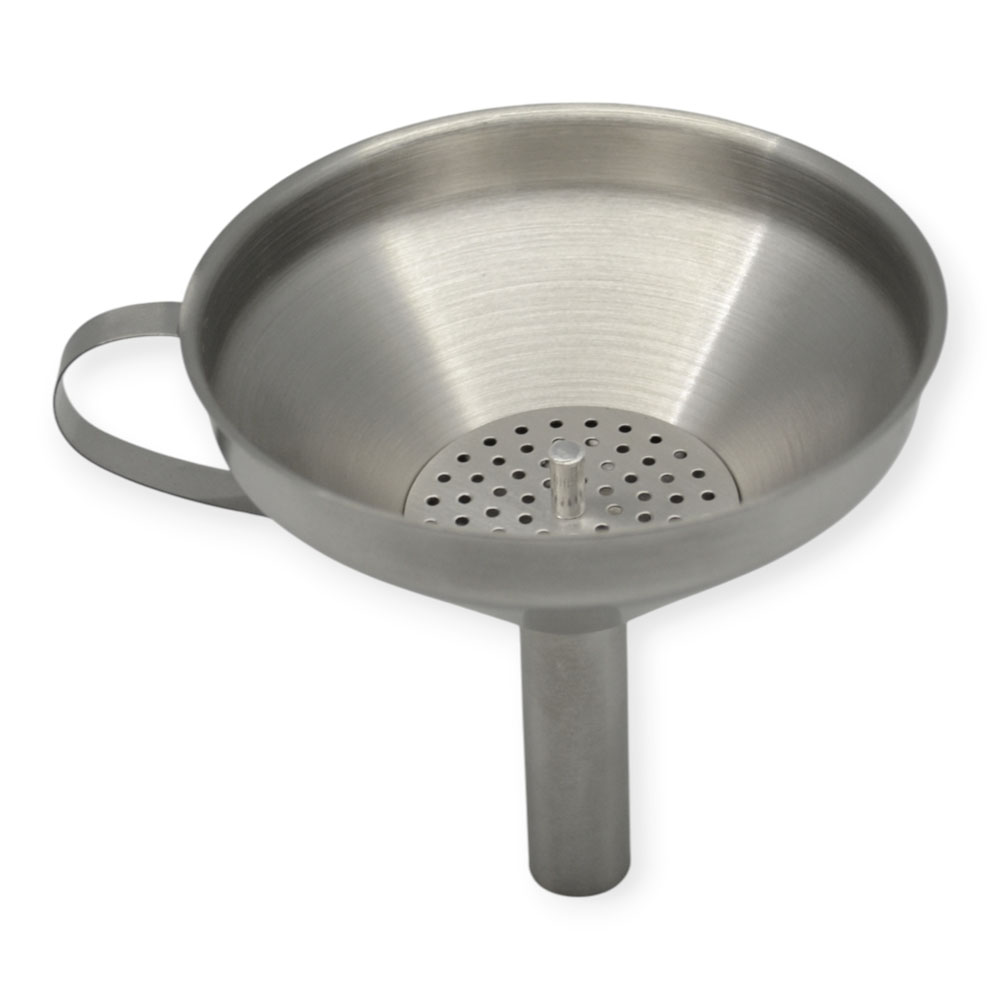 Ανοξείδωτο χωνί, ιδανικό για εύκολη και καθαρή μεταφορά υγρών υλικών. Κατασκευασμένο από ανθεκτικό ανοξείδωτο ατσάλι, προσφέρει υψηλή αντοχή στη χρήση και μεγάλη διάρκεια ζωής. Διαθέτει πρακτική λαβή για σταθερό κράτημα και ενσωματωμένο φίλτρο που συγκρατεί ανεπιθύμητα υπολείμματα, εξασφαλίζοντας καλύτερο φιλτράρισμα.