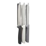 Σετ 6 τεμαχίων μαχαίρια με ανοξείδωτη λεπίδα και πλαστική λαβή σε λευκό, γκρι και γκρι σκούρο χρώμα.