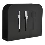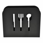 Χαρτοπετσετοθήκη μεταλλική σε μαύρο ματ χρώμα με διακόσμηση μαχαιροπήρουνα. Χρηστικά αντικείμενα με μοντέρνο και κομψό σχεδιασμό απαραίτητα για κάθε κουζίνα. Οργανώστε τον χώρο σας διαλέγοντας ανάμεσα από την μεγάλη ποικιλία της σειράς μας!