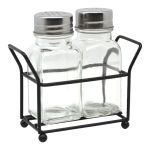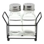 Σετ 2 τεμαχίων βαζάκια μπαχαρικών γυάλινα διάφανα με μαύρη μεταλλική βάση.