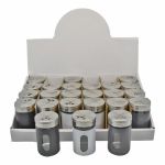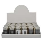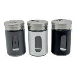 Σετ 24 τεμαχίων βαζάκια μπαχαρικών ανοξείδωτα, σε τρία χρώματα, με γυάλινη επένδυση εσωτερικά. Η συσκευασία τους είναι σε display box και συμπεριλαμβάνει και τα τρία χρώματα τα οποία είναι άσπρο, γκρι και μαύρο.