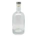 Μπουκάλι γυάλινο, χωρητικότητας 0,75lt, διάφανο και πώμα ασφαλείας.