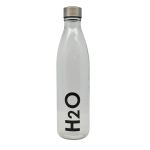 Μπουκάλι νερού γυάλινο, χωρητικότητας 1lt, διάφανο με διακόσμηση H2O και βιδωτό ανοξείδωτο πώμα.