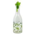 Σετ 6 γυάλινα μπουκάλια λαδιού 0,3 λίτρων με κομψό και παραδοσιακό σχέδιο από κλαδιά ελιάς και ελιές. Κάθε μπουκάλι διαθέτει πρακτικό πράσινο στόμιο ροής για εύκολο και ελεγχόμενο σερβίρισμα. Ιδανικό για αποθήκευση λαδιού, ξιδιού ή άλλων υγρών.