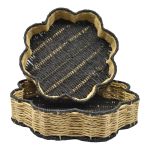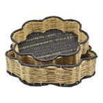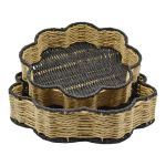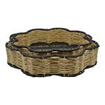 Δίσκοι σε σχήμα λουλουδιού, φτιαγμένοι από σχοινί κ μέταλλο σε μαύρο κ φυσικό χρώμα. Είναι ιδανικοί για σερβίρισμα αλλά και για διακόσμηση του σπιτιού. Κάθε σετ περιλαμβάνει 2 δίσκους διαφορετικού μεγέθους. Διάσταση μικρού 30x30x7εκ. μεγάλου 35x5x7εκ.