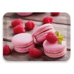 Δίσκος σερβιρίσματος από μελαμίνη, ορθογώνιος με σχέδιο ροζ μακαρόν και κόκκινα βατόμουρα. Οι δίσκοι από μελαμίνη είναι ιδιαίτερα χρηστικοί, ανθεκτικοί και κατάλληλοι για τη χρήση σε φαγητό.