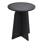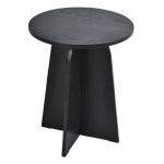 Βοηθητικό τραπεζάκι στρογγυλό σε μαύρο χρώμα, κατασκευασμένο από ξύλο με φυσική όψη νερών. Ο λιτός σχεδιασμός του με σταθερή βάση συνδυάζει κομψότητα και αντοχή. Ιδανικό για σαλόνι, υπνοδωμάτιο ή γραφείο, ταιριάζει σε μοντέρνα και κλασική διακόσμηση.