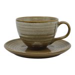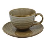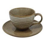 Σετ 6 φλυτζανιών τσαγιού με πιατάκι, κεραμικά, σε γήινη καφέ απόχρωση. Το ελαφρώς κυματιστό σχέδιο στην επιφάνεια χαρίζει φυσική, χειροποίητη αισθητική και διακριτική κομψότητα. Ιδανικά για τσάι ή άλλα ροφήματα, συνδυάζουν στυλ και πρακτικότητα.