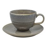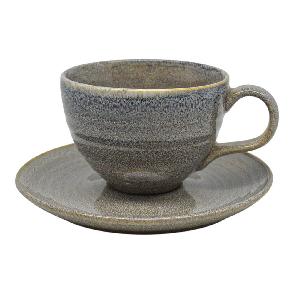 Σετ 6 φλυτζανιών τσαγιού με πιατάκι, κεραμικά, σε γκρι απόχρωση. Το ελαφρώς κυματιστό σχέδιο στην επιφάνεια χαρίζει φυσική, χειροποίητη αισθητική και διακριτική κομψότητα. Ιδανικά για τσάι ή άλλα ροφήματα, συνδυάζουν στυλ και πρακτικότητα.