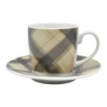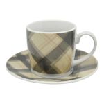 Σετ 6 τεμαχίων φλυτζάνια για καφέ με πιατάκια, κατασκευασμένα από πορσελάνη, με καρό σχέδιο σε γήινες αποχρώσεις και σε συσκευασία δώρου. Σερβίρετε και απολαύστε τον αγαπημένο σας καφέ. Κατάλληλα για χρήση στο πλυντήριο πιάτων.