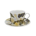 Σετ 6 τεμαχίων φλυτζάνια για τσάι με πιατάκια κατασκευασμένα από πορσελάνη, με σχέδιο μαύρα λουλούδια με χρυσό περίγραμμα και σε συσκευασία δώρου. Σερβίρετε και απολαύστε το αγαπημένο σας ρόφημα.Κατάλληλα για χρήση στο πλυντήριο πιάτων.