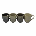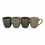 Κεραμική κούπα σε γήινες αποχρώσεις με κομψό ανάγλυφο σχέδιο. Κατάλληλη για πλυντήριο πιάτων και φούρνο μικροκυμάτων, ιδανική για καθημερινή χρήση. Η συσκευασία περιλαμβάνει και τα τέσσερα χρώματα.