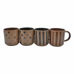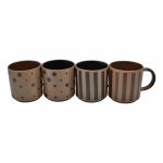 Κεραμική κούπα με μοντέρνα σχέδια από ρίγες και πουά, σε αποχρώσεις καφέ και μαύρου. Ο συνδυασμός μοτίβων προσφέρει διακριτική κομψότητα, ενώ η ματ υφή δίνει μοναδική αίσθηση. Κατάλληλη για πλυντήριο πιάτων και φούρνο μικροκυμάτων.