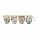 Κούπα από ποιοτική πορσελάνη Bone China, σε τέσσερα διαφορετικά σχέδια με διακόσμηση και επιγραφή. Κατάλληλη για πλυντήριο πιάτων και φούρνο μικροκυμάτων. Η συσκευασία περιλαμβάνει και τα τέσσερα σχέδια.