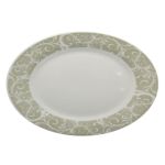 Πιατέλα από πορσελάνη σε οβάλ σχήμα σε λευκό χρώμα και σχέδιο γκρι λαχούρι περιμετρικά του πλαισίου