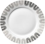 Πιάτο φαγητού ρηχό από ποιοτική πορσελάνη, στρογγυλό σε λευκό χρώμα και διακόσμηση μπεζ και μαύρα σχήματα περιμετρικά του πλαισίου. Ποιοτικά πιάτα για το καθημερινό σας τραπέζι και όχι μόνο, κατάλληλα για το πλυντήριο πιάτων και τον φούρνο μικροκυμάτων.