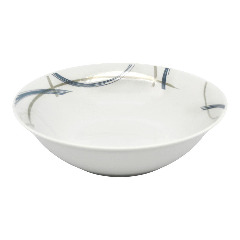 Σαλατιέρα από πορσελάνη υψηλής ποιότητας, διαμέτρου 23 εκ., ιδανική για καθημερινό σερβίρισμα. Το διακριτικό της σχέδιο με καμπύλες γραμμές σε βαθύ μπλε και μπεζ αποχρώσεις προσθέτει μοντέρνα αισθητική στο τραπέζι. Κατασκευασμένη από ανθεκτική πορσελάνη για μεγάλη διάρκεια ζωής και ευκολία στο καθάρισμα. Κατάλληλη για χρήση στο πλυντήριο πιάτων και στον φούρνο μικροκυμάτων.