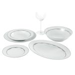 Επίσημο σερβίτσιο πιάτων 6 ατόμων από εξαιρετικής ποιότητας πορσελάνη, ιδανικό για το εορταστικό σας τραπέζι ή για να το προσφέρετε ως δώρο στα αγαπημένα σας πρόσωπα. Κατάλληλα για χρήση στο πλυντήριο πιάτων και τον φούρνο μικροκυμάτων.