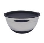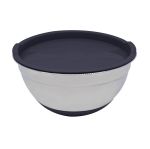 Μπολ ανοξείδωτο στρογγυλό, με μαύρο πλαστικό καπάκι και σιλικόνη στο κάτω μέρος για μεγαλύτερη σταθερότητα.Εκτός από την αποθήκευση τροφίμων μπορεί να χρησιμοποιηθεί και για μπολ σερβιρίσματος .Ασφαλή η χρήση του στο πλυντήριο πιάτων.