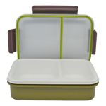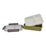 Φαγητοδοχείο πλαστικό με δύο εσωτερικές θήκες, πλαστικό καπάκι ασφαλείας και αεροστεγές κλείσιμο για να διατηρεί φρέσκο το φαγητό. Κατάλληλο για χρήση στο φούρνο μικροκυμάτων αφαιρώντας το καπάκι. Ασφαλής η χρήση του το πλυντήριο πιάτων.BPA-Free.