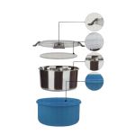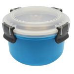 Φαγητοδοχείο στρογγυλό διπλό, με ανοξείδωτο το εσωτερικό δοχείο και πλαστικό το εξωτερικό σε μπλε χρώμα. Διαθέτει πλαστικό καπάκι ασφαλείας και αεροστεγές κλείσιμο για να διατηρεί φρέσκο το φαγητό. Κατάλληλο για το πλυντήριο πιάτων.BPA-Free