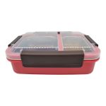 Φαγητοδοχείο πλαστικό με δύο εσωτερικές ανοξείδωτες θήκες 250ml και 400ml, πλαστικό καπάκι ασφαλείας και αεροστεγές κλείσιμο για να διατηρεί φρέσκο το φαγητό.Υπάρχει δυνατότητα τοποθέτησης ζεστού νερού στο κάτω πλαστικό δοχείο 800ml για θέρμανση των θηκών