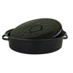 Γάστρα φούρνου οβάλ με εμαγιέ αντικολλητική επίστρωση, καπάκι και σχάρα, άριστης ποιότητας, ιδανική για χρήση σε υψηλές θερμοκρασίες. Διανέμει ομοιόμορφα την θερμότητα κατά το ψήσιμο και έχει εξαιρετική ανθεκτικότητα. Ασφαλής η χρήση σε πλυντήριο πιάτων.