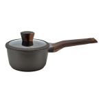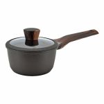 Κατσαρολάκι γάλκτος κατασκευασμένο από χυτό αλουμίνιο συνδυάζει αντοχή με απόλυτη απόδοση για εκπληκτικά μαγειρικά αποτελέσματα. Η εσωτερική επιφάνεια διαθέτει τριπλή αντικολλητική επίστρωση πέτρας εξασφαλίζοντας αντοχή σε υψηλές θερμοκρασίες και γδαρσίματα. Διαθέτει γυάλινο πυράντοχο καπάκι το οποίο περιβάλλεται από στεφάνι σιλικόνης. Έχει ενισχυμένη εξωτερική επιφάνεια σε σκούρο καφέ χρώμα και βιομηχανικό πάτο για ομοιόμορφη κατανομή της θερμότητας. Οι λαβές του είναι από αντιολισθητικό βακελίτη soft touch σε όψη ξύλου προσφέροντας άνεση κατά τη χρήση και αντιθερμική προστασία. Επιπλέον, είναι κατάλληλο για όλες τις εστίες, συμπεριλαμβανομένων και των επαγωγικών. Τέλος, είναι ασφαλές για χρήση στο πλυντήριο πιάτων, καθιστώντας εύκολη την καθημερινή φροντίδα. Πάχος 1,6/4,0mm