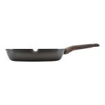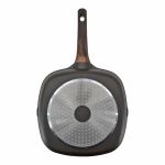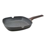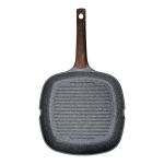 Γκριλιέρα κατασκευασμένη από χυτό αλουμίνιο συνδυάζει αντοχή με απόλυτη απόδοση για εκπληκτικά μαγειρικά αποτελέσματα. Η εσωτερική επιφάνεια διαθέτει τριπλή αντικολλητική επίστρωση πέτρας εξασφαλίζοντας αντοχή σε υψηλές θερμοκρασίες και γδαρσίματα. Διαθέτει ενισχυμένη εξωτερική επιφάνεια σε σκούρο καφέ χρώμα και βιομηχανικό πάτο για ομοιόμορφη κατανομή της θερμότητας. Η λαβή της είναι από αντιολισθητικό βακελίτη soft touch σε όψη ξύλου προσφέροντας άνεση κατά τη χρήση και αντιθερμική προστασία. Επιπλέον, είναι κατάλληλη για όλες τις εστίες, συμπεριλαμβανομένων και των επαγωγικών. Τέλος, είναι ασφαλές για χρήση στο πλυντήριο πιάτων, καθιστώντας εύκολη την καθημερινή φροντίδα. Πάχος 1,6/4,0mm