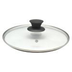 Γυάλινο πυράντοχο καπάκι, για σκευή 24εκ.,το οποίο περιβάλλεται από ανοξείδωτο στεφάνι. Η λαβή του είναι από αντιολισθητικό βακελίτη σε μαύρο χρώμα προσφέροντας άνεση κατά τη χρήση και αντιθερμική προστασία. Είναι κατάλληλο για το πλυντήριο πιάτων.