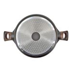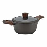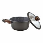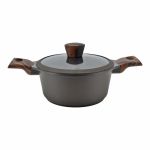 Κατσαρόλα κατασκευασμένη από χυτό αλουμίνιο συνδυάζει αντοχή με απόλυτη απόδοση για εκπληκτικά μαγειρικά αποτελέσματα. Η εσωτερική επιφάνεια διαθέτει τριπλή αντικολλητική επίστρωση πέτρας εξασφαλίζοντας αντοχή σε υψηλές θερμοκρασίες και γδαρσίματα. Διαθέτει γυάλινο πυράντοχο καπάκι το οποίο περιβάλλεται από στεφάνι σιλικόνης. Έχει ενισχυμένη εξωτερική επιφάνεια σε σκούρο καφέ χρώμα και βιομηχανικό πάτο για ομοιόμορφη κατανομή της θερμότητας. Οι λαβές της είναι από αντιολισθητικό βακελίτη soft touch σε όψη ξύλου προσφέροντας άνεση κατά τη χρήση και αντιθερμική προστασία. Επιπλέον, είναι κατάλληλη για όλες τις εστίες, συμπεριλαμβανομένων και των επαγωγικών. Τέλος, είναι ασφαλές για χρήση στο πλυντήριο πιάτων, καθιστώντας εύκολη την καθημερινή φροντίδα. Πάχος 1,6/4,0mm