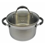Ανοξείδωτη 18/10 πάχους 0,6mm, σε χρώμα ασημί ματ με γκρί λαβές, γυάλινο καπάκι και συσκευασία σε άσπρο κουτί