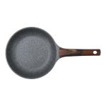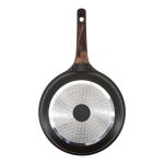 Τηγάνι κατασκευασμένο από χυτό αλουμίνιο συνδυάζει αντοχή με απόλυτη απόδοση για εκπληκτικά μαγειρικά αποτελέσματα. Η εσωτερική επιφάνεια διαθέτει τριπλή αντικολλητική επίστρωση πέτρας εξασφαλίζοντας αντοχή σε υψηλές θερμοκρασίες και γδαρσίματα. Διαθέτει ενισχυμένη εξωτερική επιφάνεια σε σκούρο καφέ χρώμα και βιομηχανικό πάτο για ομοιόμορφη κατανομή της θερμότητας. Η λαβή του είναι από αντιολισθητικό βακελίτη soft touch σε όψη ξύλου προσφέροντας άνεση κατά τη χρήση και αντιθερμική προστασία. Επιπλέον, είναι κατάλληλο για όλες τις εστίες, συμπεριλαμβανομένων και των επαγωγικών. Τέλος, είναι ασφαλές για χρήση στο πλυντήριο πιάτων, καθιστώντας εύκολη την καθημερινή φροντίδα. Πάχος 1,6/4,0mm