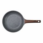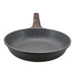 Τηγάνι κατασκευασμένο από χυτό αλουμίνιο συνδυάζει αντοχή με απόλυτη απόδοση για εκπληκτικά μαγειρικά αποτελέσματα. Η εσωτερική επιφάνεια διαθέτει τριπλή αντικολλητική επίστρωση πέτρας εξασφαλίζοντας αντοχή σε υψηλές θερμοκρασίες και γδαρσίματα. Διαθέτει ενισχυμένη εξωτερική επιφάνεια σε σκούρο καφέ χρώμα και βιομηχανικό πάτο για ομοιόμορφη κατανομή της θερμότητας. Η λαβή του είναι από αντιολισθητικό βακελίτη soft touch σε όψη ξύλου προσφέροντας άνεση κατά τη χρήση και αντιθερμική προστασία. Επιπλέον, είναι κατάλληλο για όλες τις εστίες, συμπεριλαμβανομένων και των επαγωγικών. Τέλος, είναι ασφαλές για χρήση στο πλυντήριο πιάτων, καθιστώντας εύκολη την καθημερινή φροντίδα. Πάχος 1,6/4,0mm