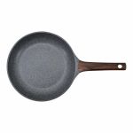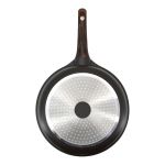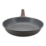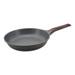 Τηγάνι κατασκευασμένο από χυτό αλουμίνιο συνδυάζει αντοχή με απόλυτη απόδοση για εκπληκτικά μαγειρικά αποτελέσματα. Η εσωτερική επιφάνεια διαθέτει τριπλή αντικολλητική επίστρωση πέτρας εξασφαλίζοντας αντοχή σε υψηλές θερμοκρασίες και γδαρσίματα. Διαθέτει ενισχυμένη εξωτερική επιφάνεια σε σκούρο καφέ χρώμα και βιομηχανικό πάτο για ομοιόμορφη κατανομή της θερμότητας. Η λαβή του είναι από αντιολισθητικό βακελίτη soft touch σε όψη ξύλου προσφέροντας άνεση κατά τη χρήση και αντιθερμική προστασία. Επιπλέον, είναι κατάλληλο για όλες τις εστίες, συμπεριλαμβανομένων και των επαγωγικών. Τέλος, είναι ασφαλές για χρήση στο πλυντήριο πιάτων, καθιστώντας εύκολη την καθημερινή φροντίδα. Πάχος 1,6/4,0mm
